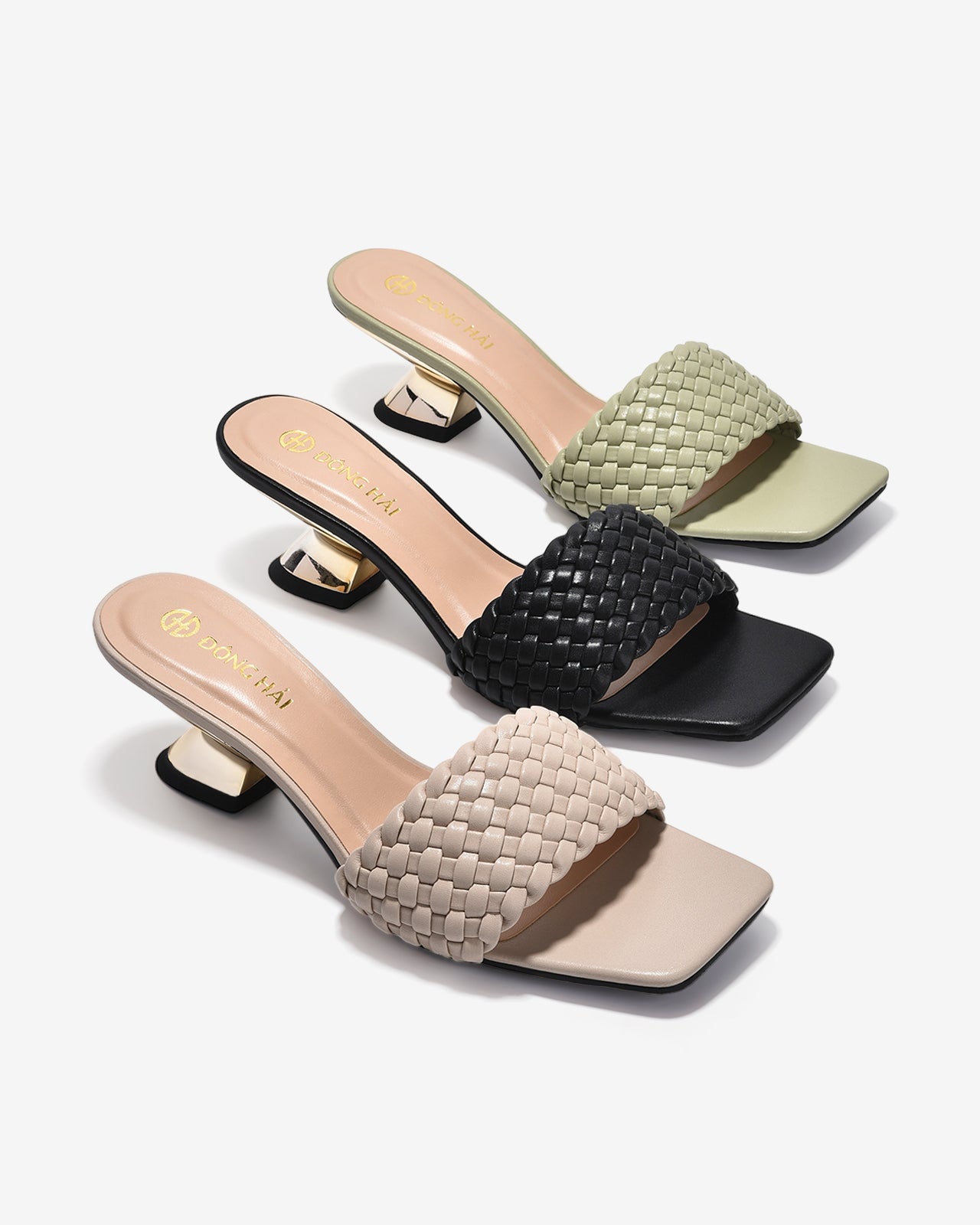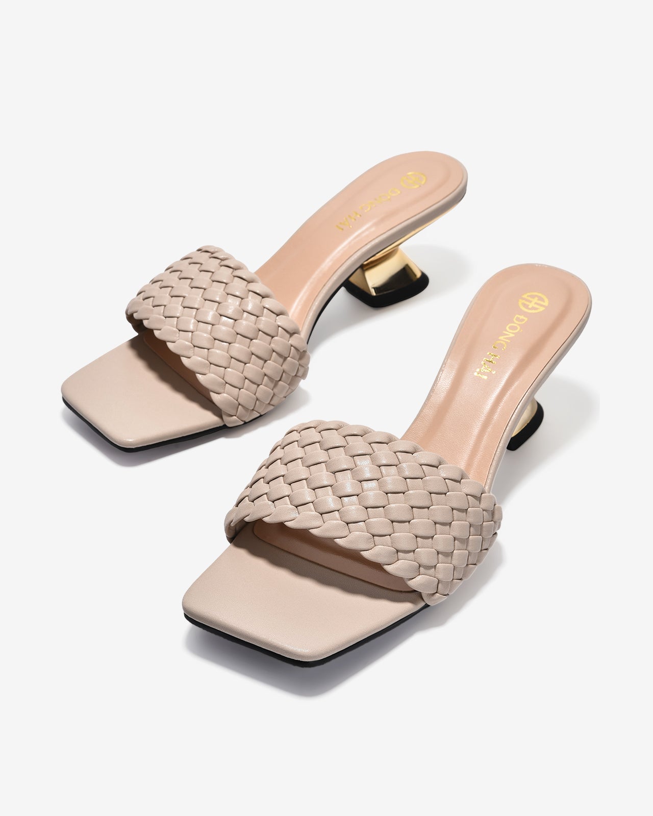 Dép cao gót nữ Đông Hải nổi bật với quai đan thủ công tinh xảo và dáng mũi vuông hiện đại, tôn nét thanh thoát cho bàn chân. Phần gót khối điêu khắc ánh kim độc đáo mang lại vẻ sang trọng khác biệt, đồng thời tạo sự vững chãi trong từng bước đi. Đây là lựa chọn lý tưởng để kết hợp linh hoạt từ công sở đến dạo phố.