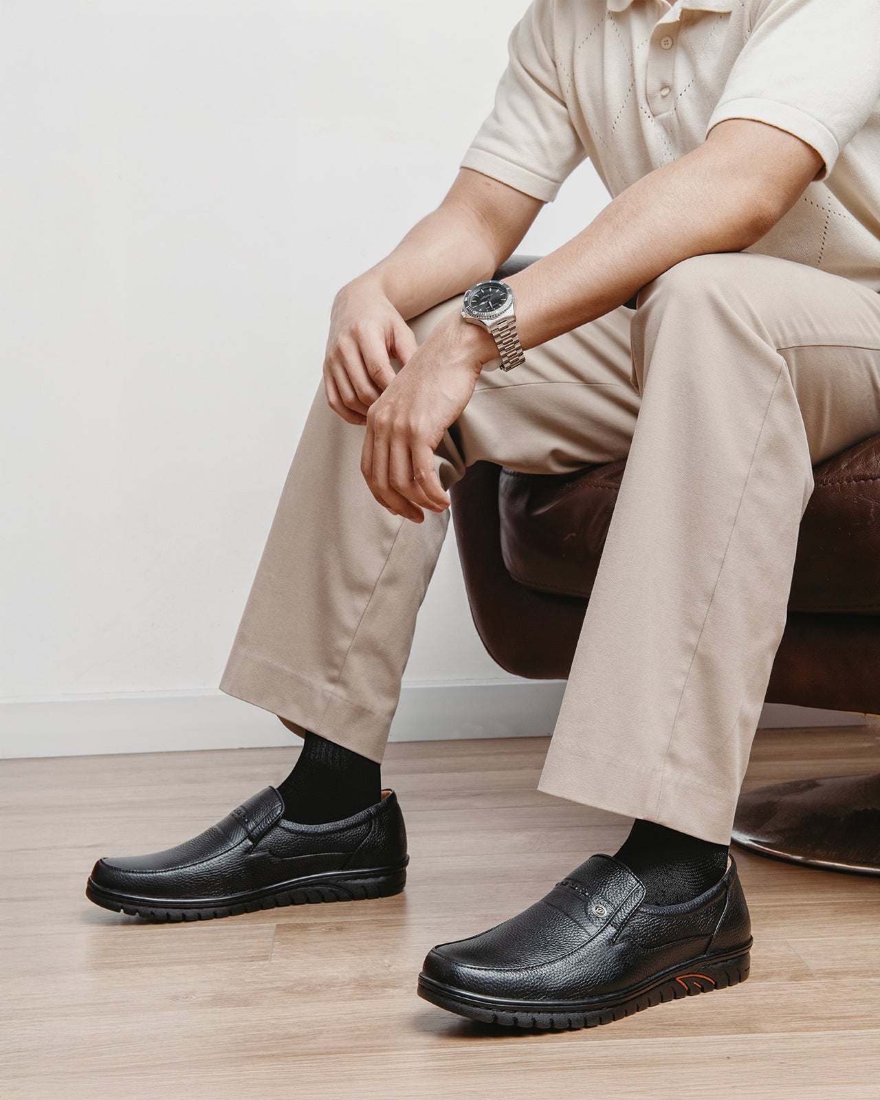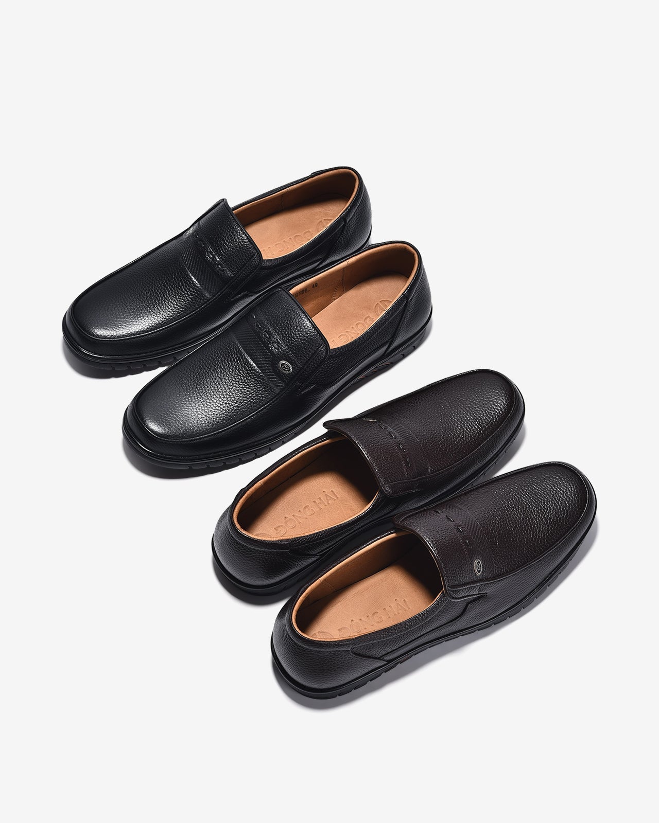 Giày Tây Nam Đông Hải Da Dập Đính Phụ Kiện từ chất liệu da cao cấp cho tổng quan hoàn thiện bắt mắt, phụ kiện kim loại đính góc trái thêm điểm nhấn lịch lãm cho quý ông thời thượng.