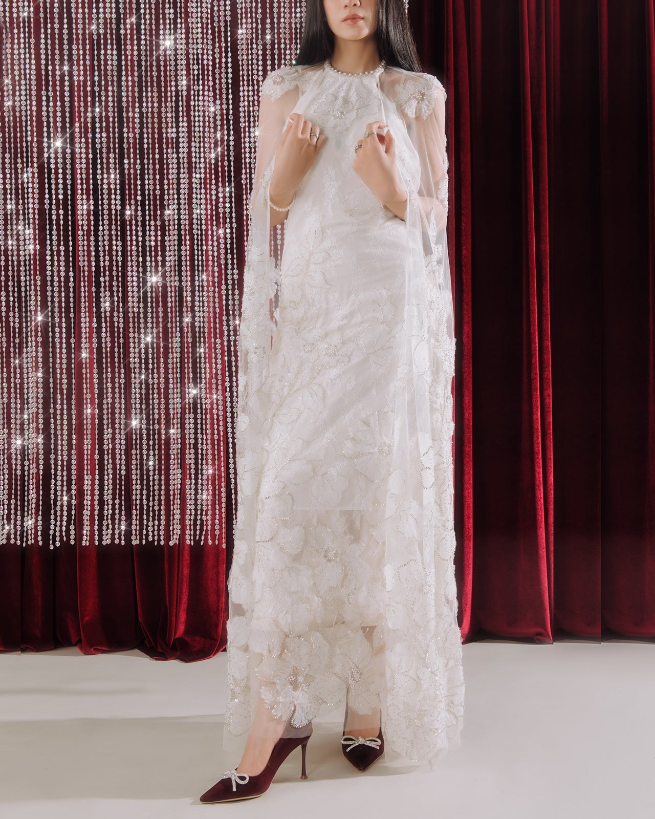 Giày Cao Gót Đông Hải mang vẻ đẹp quyến rũ với thiết kế mũi nhọn thanh mảnh giúp đôi chân trông thon dài và cuốn hút hơn. Hiệu ứng ánh nhẹ sang trọng dưới ánh đèn tạo nên vẻ ngoài đặc biệt cho mẫu giày này. Điểm nhấn nổi bật nằm ở nơ pha lê đính đá lấp lánh ở phần mũi giày mang lại nét tinh tế sang trọng. Gót cao thanh thoát, tôn dáng nhưng vẫn giữ độ vững vàng khi di chuyển. Kiểu dáng thời thượng, lý tưởng cho tiệc tối, sự kiện hoặc các dịp cần sự trang nhã.