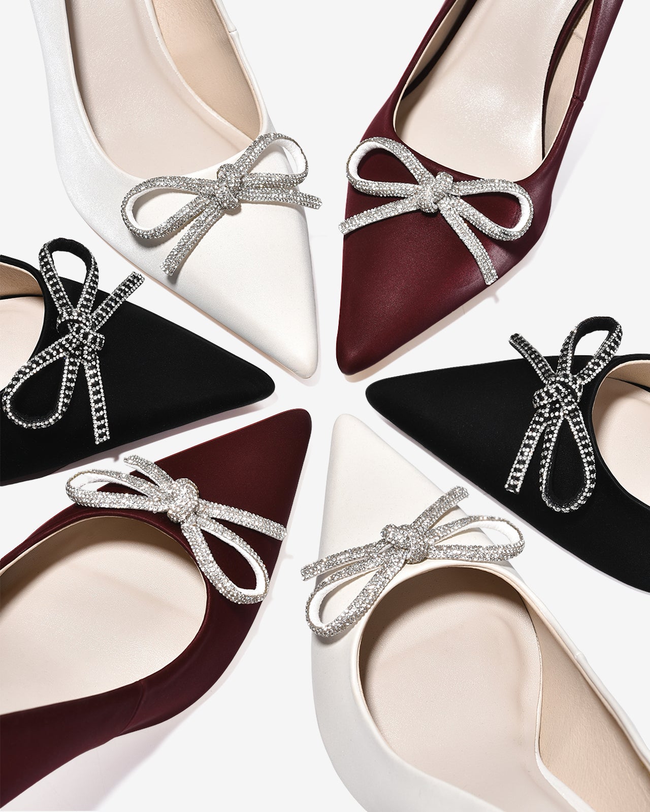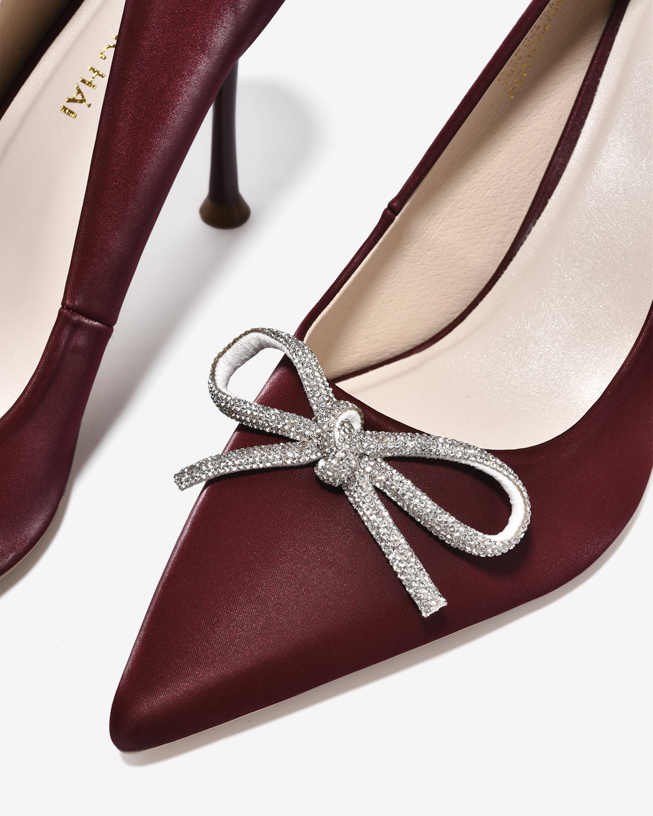Giày Cao Gót Đông Hải Mũi Nhọn Nơ Đính Đá