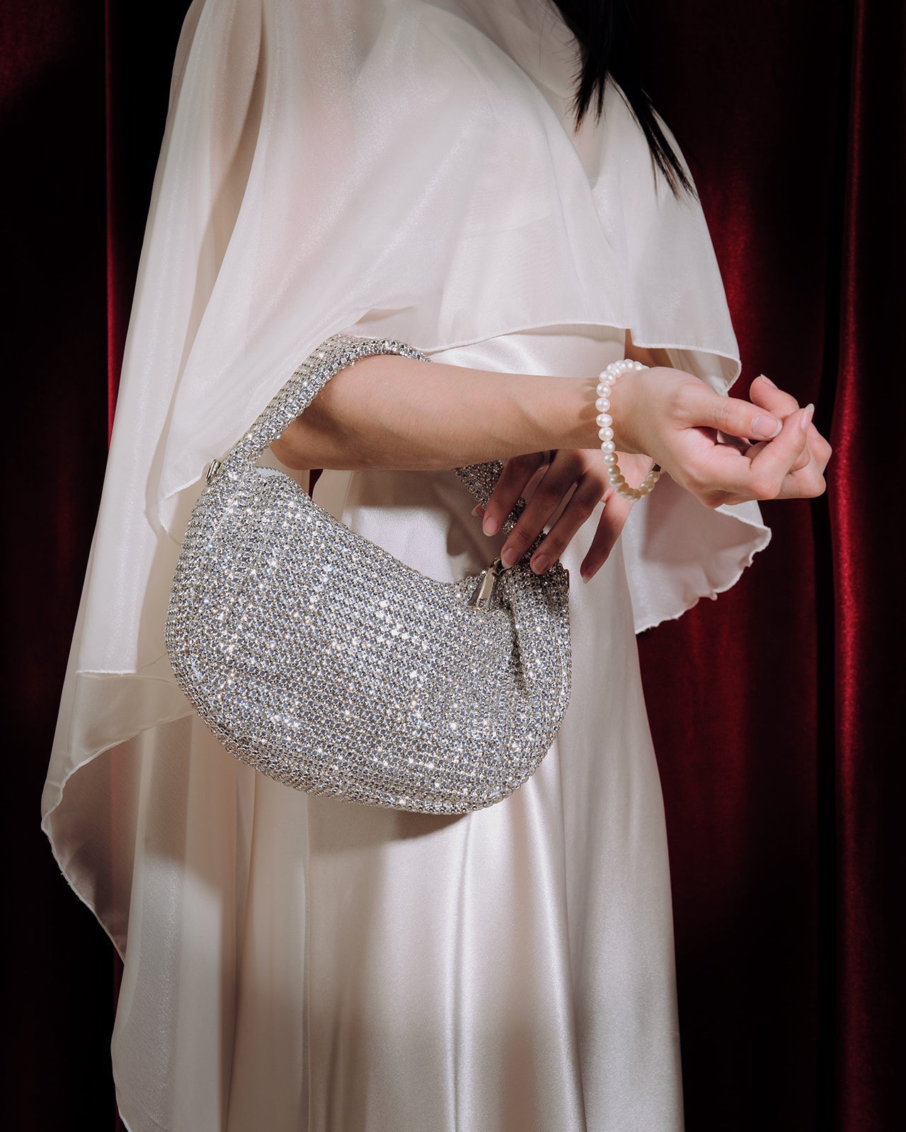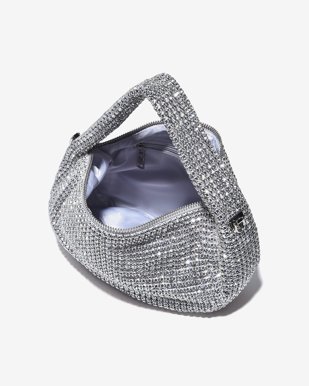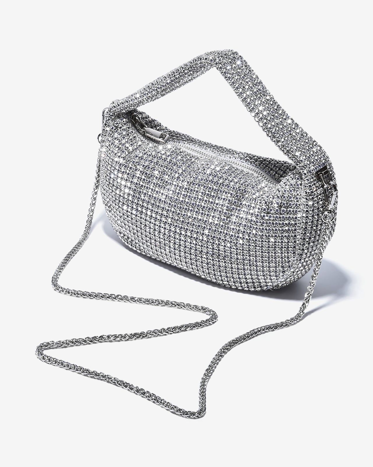 Túi Đính Đá Zucia gây ấn tượng với phom dáng bán nguyệt hiện đại, phủ kín bằng những viên đá cắt giác tinh xảo mang hiệu ứng ánh sáng lấp lánh ở mọi góc nhìn. Dây quai mềm mại giúp cầm nắm thoải mái, kết hợp khóa kéo kim loại chắc chắn, tiện lợi. Thiết kế nhỏ gọn nhưng thời thượng, hoàn hảo cho những buổi hẹn hò hay tiệc tối sang trọng.