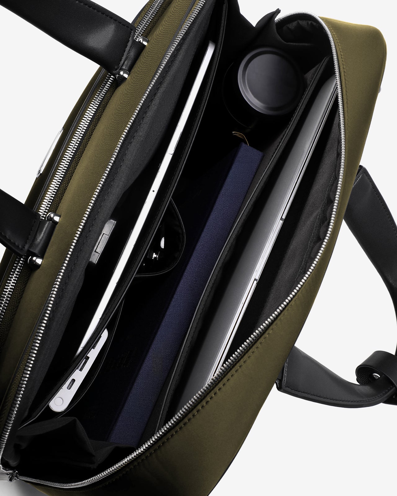 Cấu trúc cặp gồm 2 ngăn chính và 1 ngăn phụ lớn phía trước, giúp tối ưu không gian lưu trữ. Ngăn chính có đệm chống sốc bảo vệ laptop 16 inch, cùng dây cố định giúp giữ thiết bị ổn định khi di chuyển. Ngăn trước thiết kế dạng mở nhanh, cho phép sắp xếp gọn các vật dụng cá nhân như điện thoại, ví, thẻ, passport, sạc, bút và tai nghe,... giúp người dùng dễ dàng tìm thấy mọi thứ trong tích tắc. Đặc biệt, mặt sau có đai gài vali kéo, giúp cố định cặp khi di chuyển, là chi tiết hữu ích cho các chuyến công tác hoặc du lịch ngắn ngày.