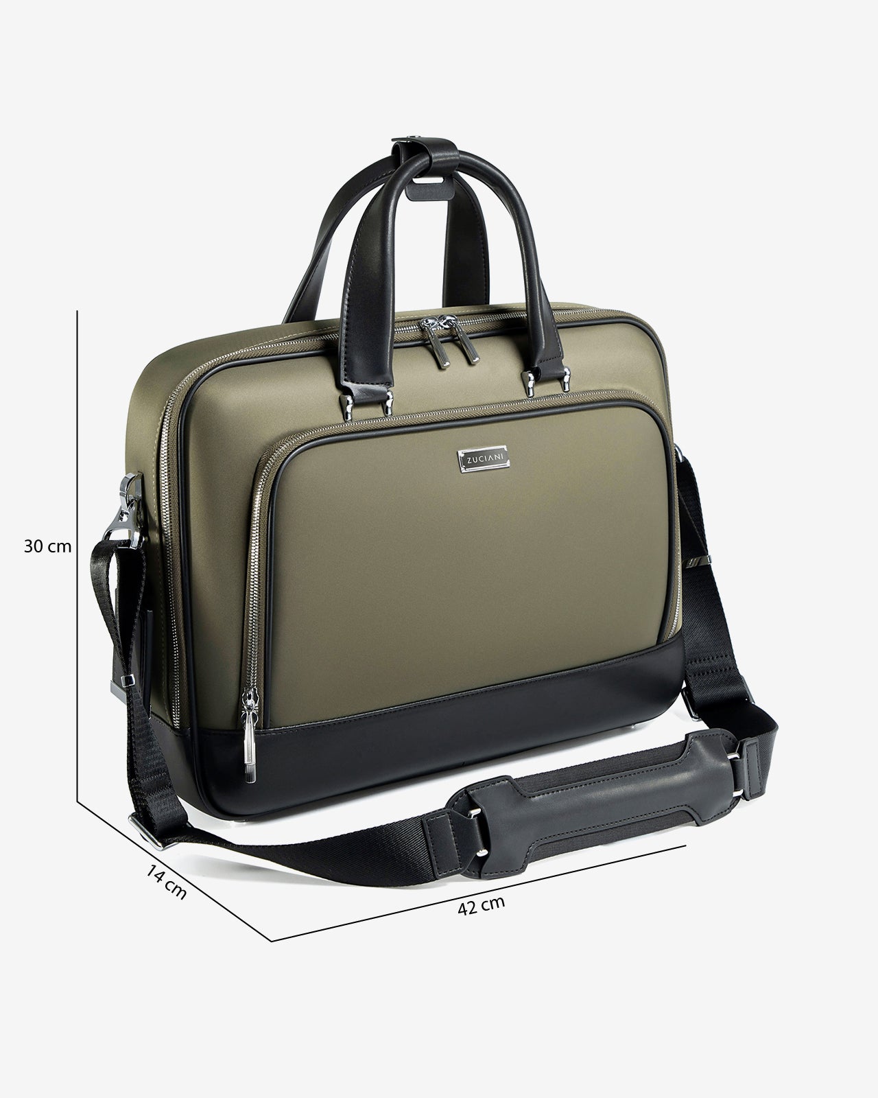 Mẫu cặp nam cao cấp Zuciani là sự kết hợp hoàn hảo giữa thiết kế hiện đại sang trọng và công năng thông minh. Với phom dáng vững vàng, mặt da kỹ thuật cao cấp, từng chi tiết đều được hoàn thiện tỉ mỉ để mang lại trải nghiệm sử dụng tiện lợi nhất cho người đàn ông hiện đại. Sở hữu kích thước 30x42x14 (cm) là lựa chọn hoàn hảo chứa đựng nhiều vật dụng khác nhau. Phần tay cầm đôi bọc da mềm mại, kết nối bằng ngàm kim loại sáng, tạo cảm giác cầm chắc tay và sang trọng. Dây đeo vai bản lớn, có đệm da chống trượt, giúp phân tán trọng lực khi đeo trên vai trong thời gian dài. Hệ khóa kéo kim loại sáng bóng mở trượt nhẹ tay, cho phép người dùng thao tác nhanh chóng và êm mượt.