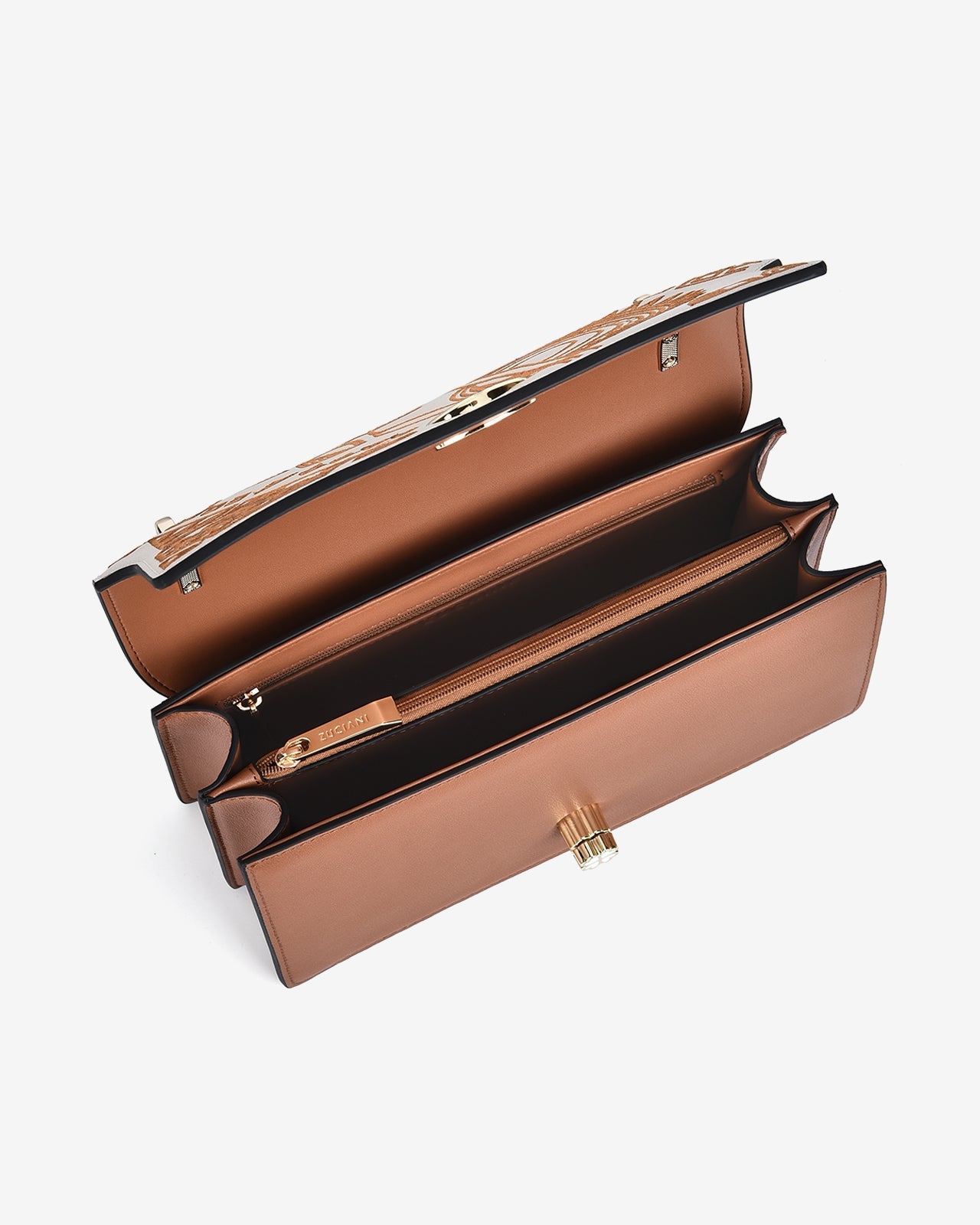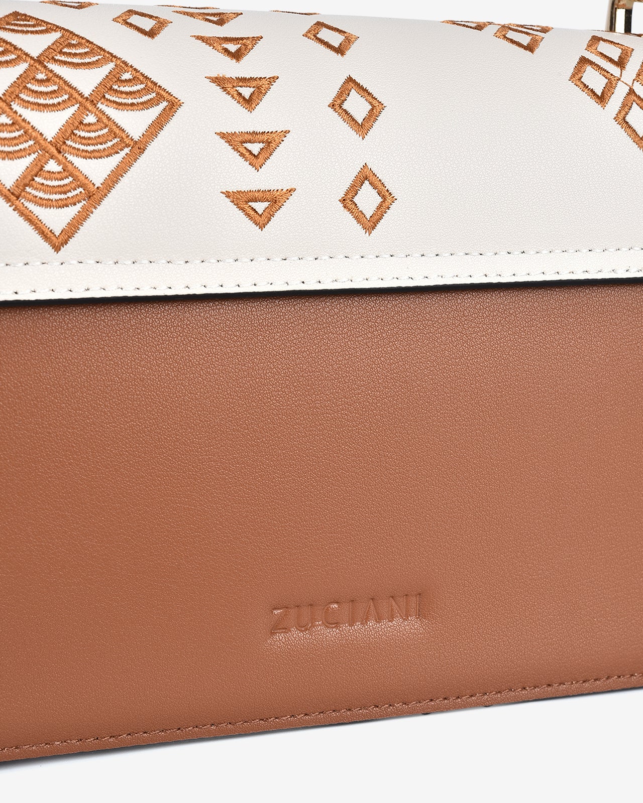 Túi Đeo Vai Zuciani The Dreamer dáng hộp nắp gài cũng phần họa tiết thêu mang hơi hướng thổ cẩm đầy đặc sắc, khóa gài hình hoa kim loại hài hòa với thiết kế tổng thể tăng phần nổi bật